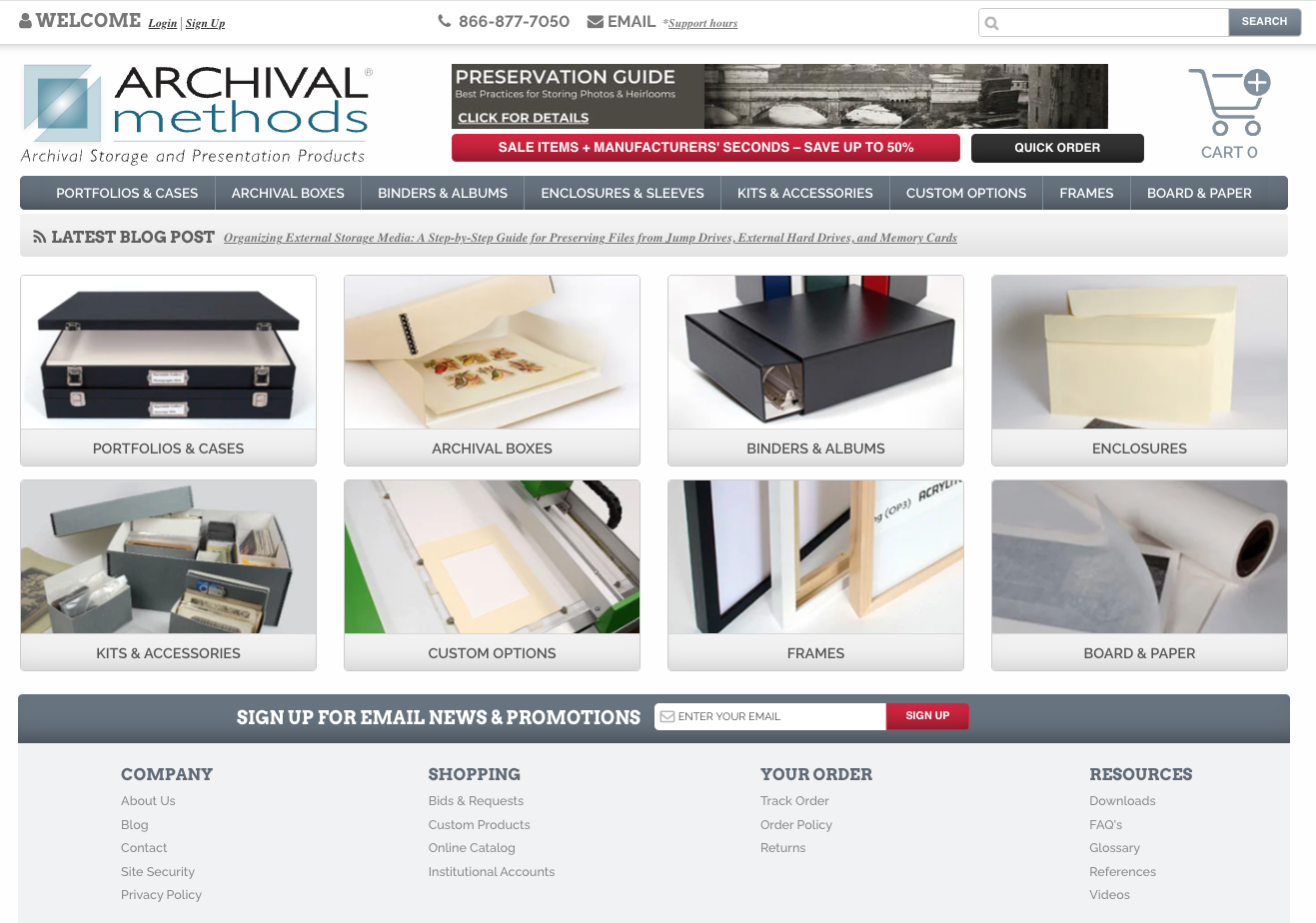 Archival Methods website navigation tutorial - each category image is representative of that product category.