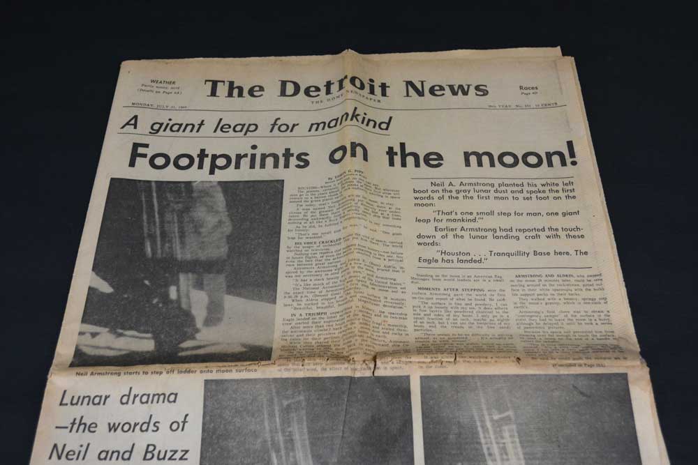 Someone thought to save this newspaper about the momentous moon landing on July 21, 1969. But the 50 plus years since have not been kind to this Detroit paper because: